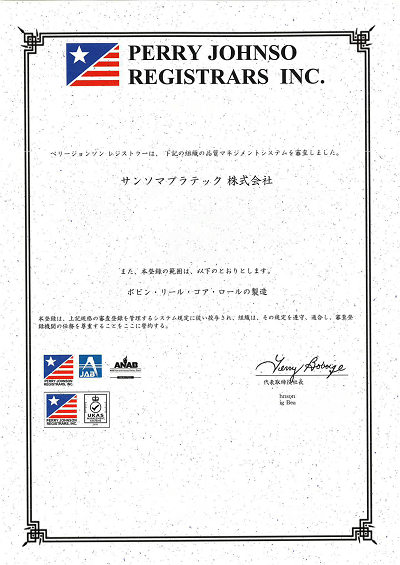 今回認証取得した対象範囲は「ボビン・リール・コア・ロールの製造」となります。