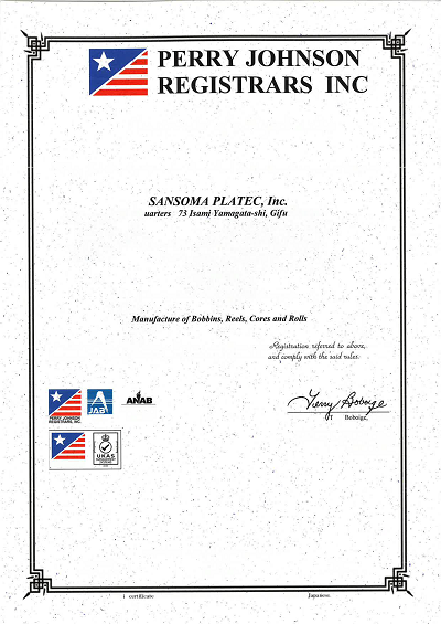今回認証取得した対象範囲は「ボビン・リール・コア・ロールの製造」となります。